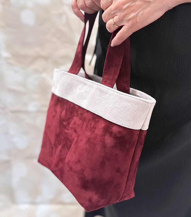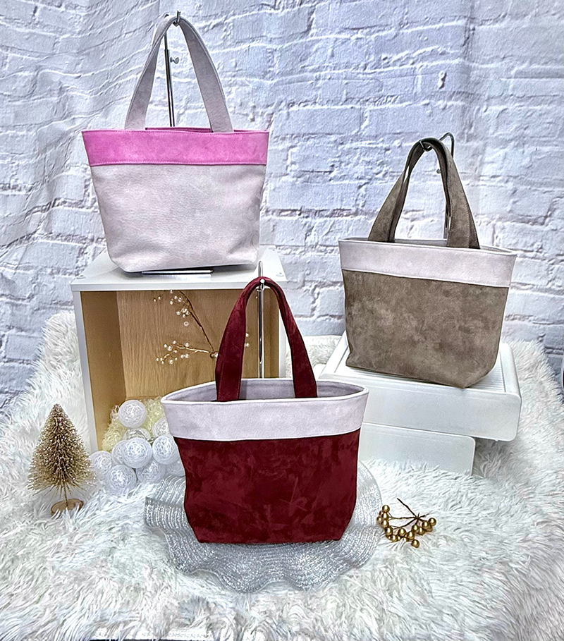 バッグ本体が軽く、本革Pig Skin Nubuck(ヌバック)の魅力である起毛の美しさが生えたツートンカラーの舟形トートバッグ。