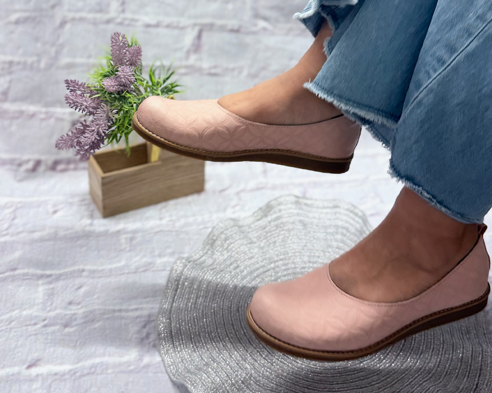 本革Pig Skinの型押しを、パイピングで更にデザインを引き立たせたシンプルで華やかなカラーの本革型押し。クッション性のある良い履き心地と、本革使用の高級感あるデザイン。